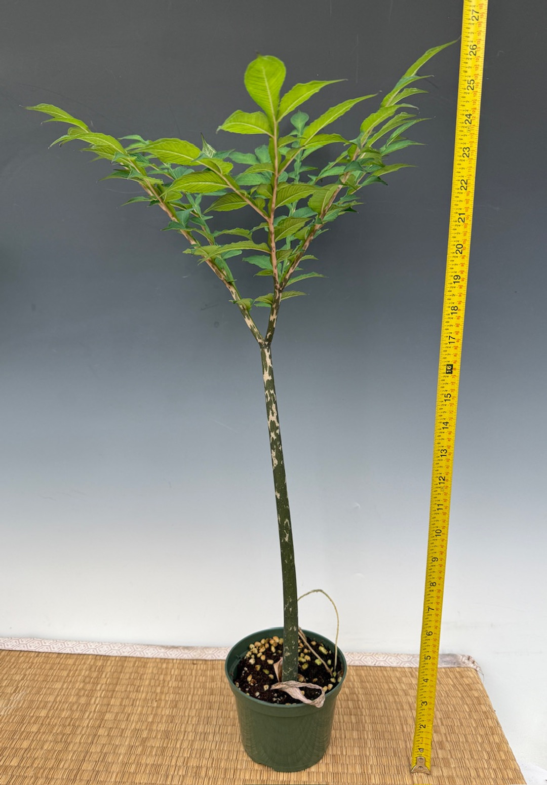 An excellent houseplant for the unique plant grower! Also known as the "Voodoo Lily," Amorphophallus konjac is a unique and easy-to-grow aroid that grows to a 3.5-foot leaf span and develops multiple growths over time due to the corms making new 'pup' offshoots. This plant produces a new leaf each spring, which will grow and feed the corm until it sheds the foliage and rests for several months. After many years of this cycle, the tuber sends up a 5-foot tall flower that smells like rotten meat to attract its pollinator, flies, and carrion beetles. These plants are blooming-size when the corm reaches the size of a baseball. They like frequent water and fertilizer in summer. Once blooming size, they usually flower every 2 to 3 years in between. The hotter you grow, the faster they can re-flower (Southern USA is a great place to grow these outdoors).