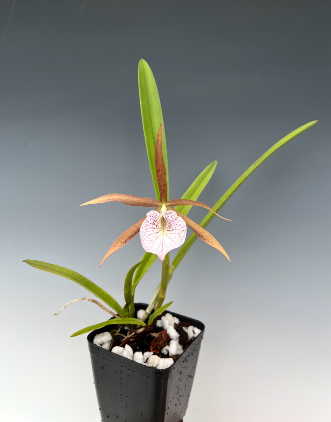 These are seed grown so there will be variability in the flowers. Pictured is the first to bloom from this batch, which shows colors from the tenebrosa and shape in the lip from the nodosa.