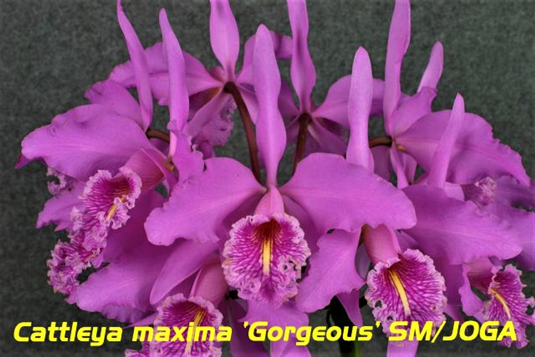 Cattleya maxima is known for its 'wild' flower look, with fpetals that typically face forward. These do have wider segments than most maximas and a deeper purple color.