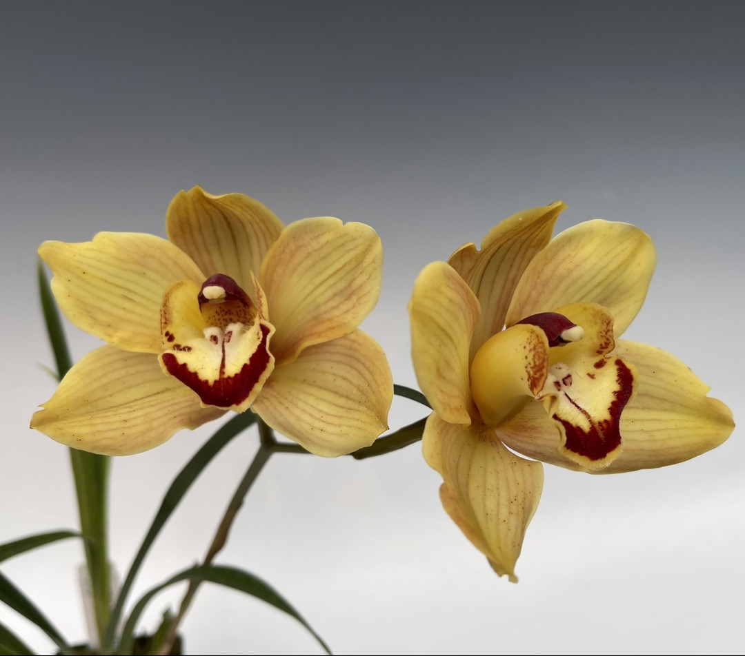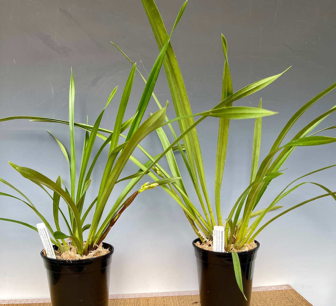 A fantastic cross made here at Orchids Limited. Numu Tabetoi is a cross Jerry Fischer made between Cymbidium Looker and Cymbidium Crackerjack ‘Midnight Magic’ AM/ AOS The flowers are a bronze - orange color that fades to yellow over 2-3 months. Alice & Ralph is a giant tetraploid orange flower and the combination of these two parents will produce more compact plants but with good medium to large size flowers of heavy substance. The photos are of the first two plants to flower. We made this cross in 2017 and they have now finally reached flowering size (November 2024).