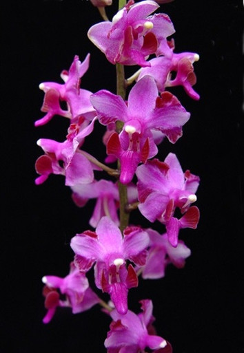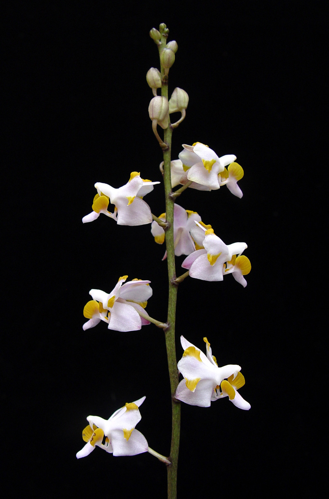 Flowers are white with a yellow lip, sometimes with a hint of lavender. These grow intermediate to warm and are a fairly low maintenance orchid. They grow well in sphagnum moss or bark mixes. The plants remain compact and have straight flower stems hosting several small flowers. The stems are typically strong enough to not need any staking support.