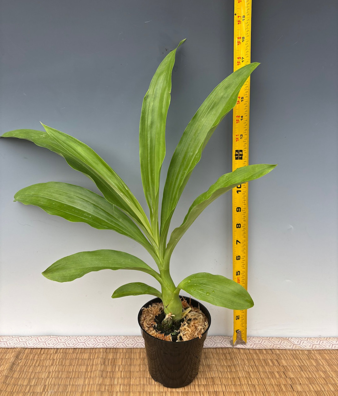 Current plants are blooming size, established in 4" pots with sphagnum moss. See the last photo for size reference. We expect flower spikes to emerge in fall 2025.