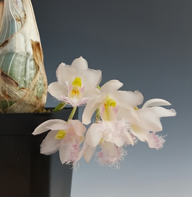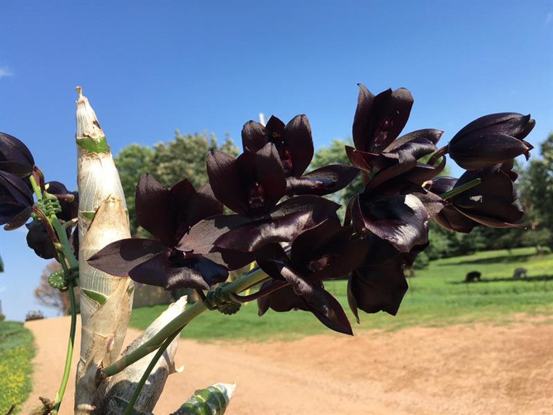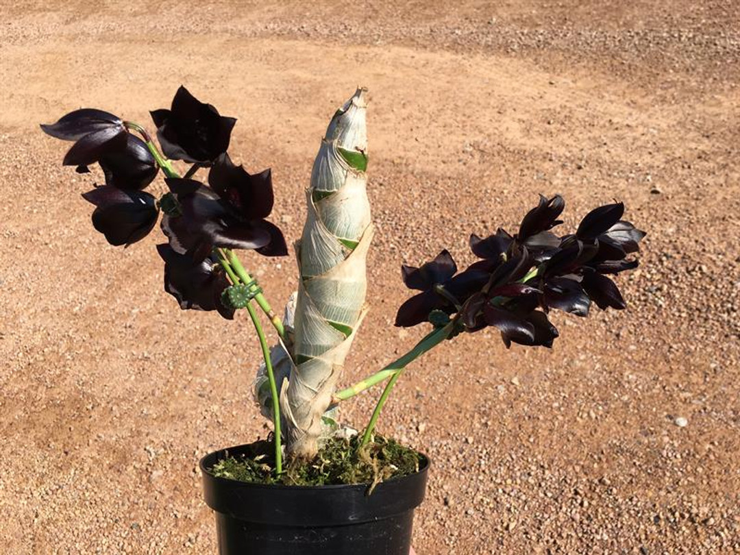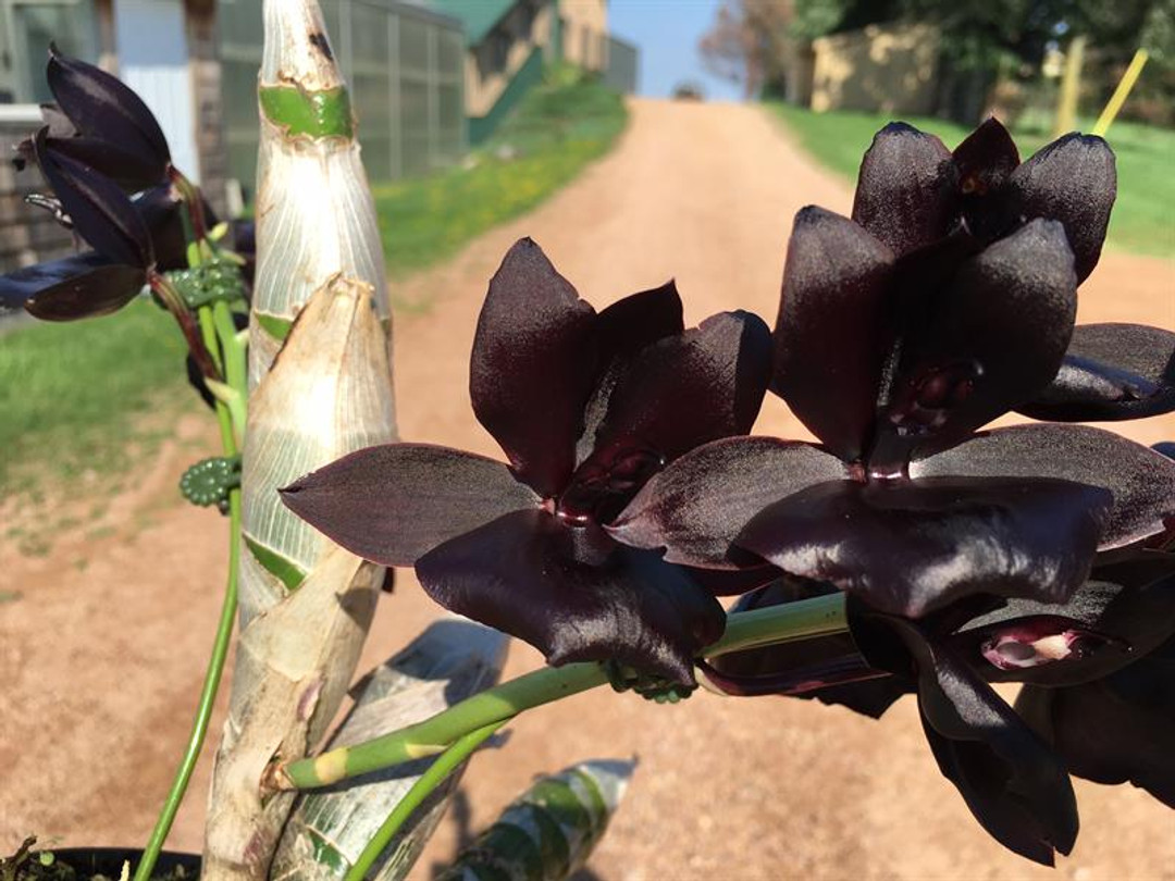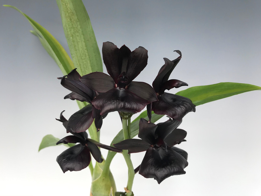 One of the blackest orchids available today! This stunning plant thrives with plenty of heat, water, and fertilizer during the active growing season in spring and summer. After or even during flowering, it is common for the leaves to drop. Once flowering finishes, reduce watering and fertilizer until new growth appears—then resume normal care.