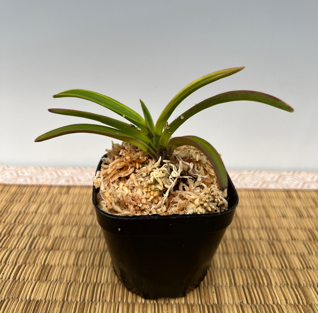 Beniougi translates to 'Red Folding Fan'. This plant has sturdy leaves that produce red markings on the bottom half of the foliage, and yellow markings on the top half.