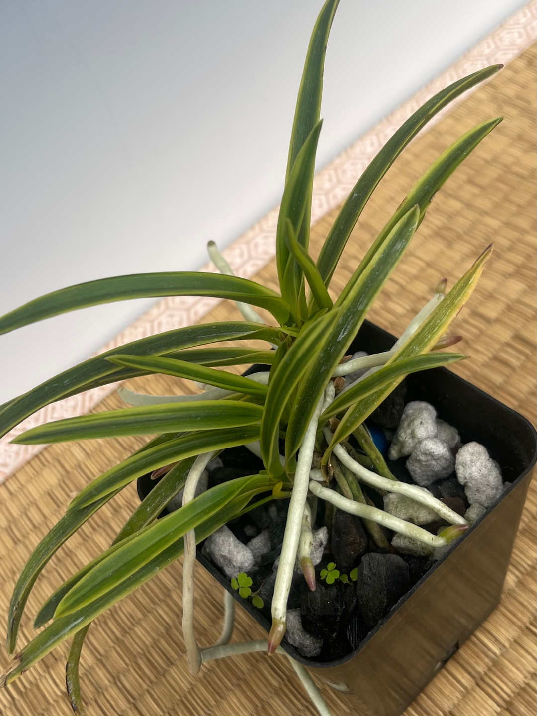 This plant has 5 growths of various sizes with a start. It is growing in a charcoal and perlite mix, which is a long-term mix we often use.