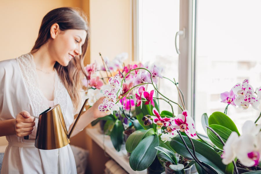 - Water your orchid when the potting medium approaches dryness, every 5-7 days. Avoiding over-watering to prevent root rot.