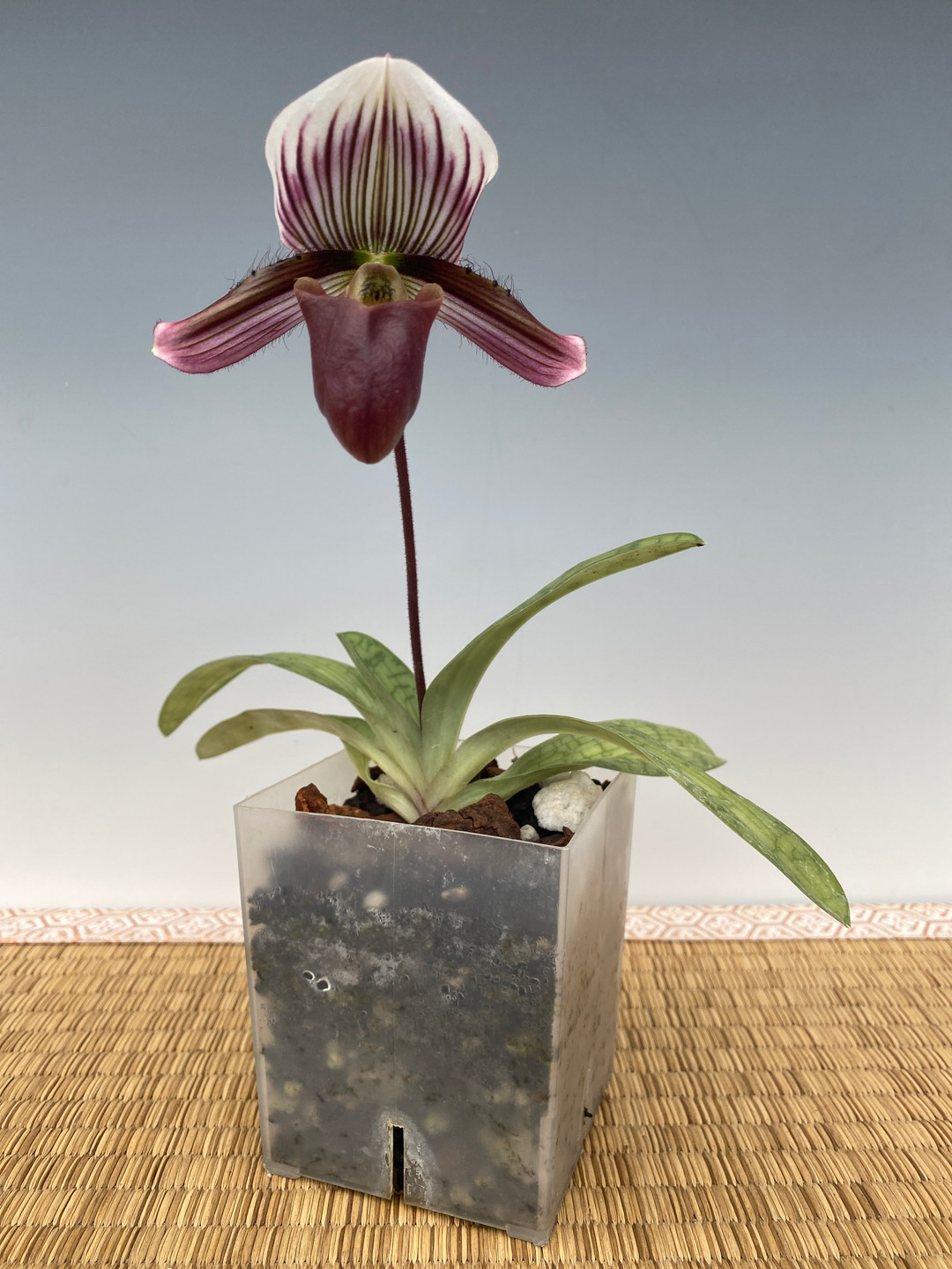 The current plants being offered are 1-2 growth plants. These plants are much more compact than standard Maudiae-type hybrids.