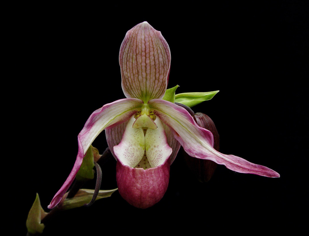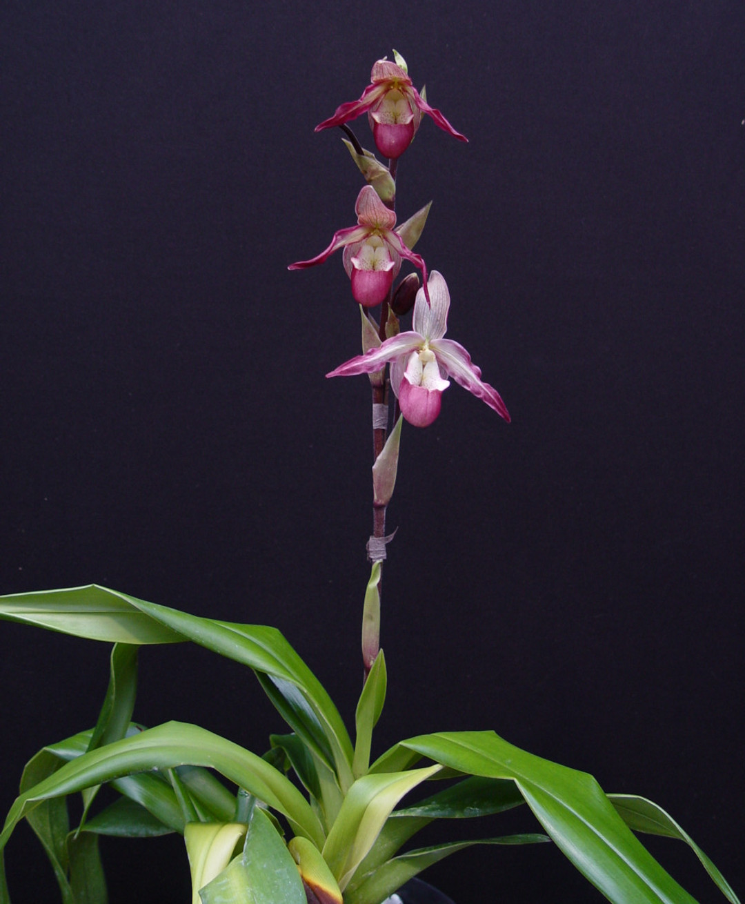 A classical pink & white hybrid that was originally registered in 1883. These plants are divisions from collections originating in England and thus are living antiques! This orchid produces lush foliage and is relatively easy to grow and flower.