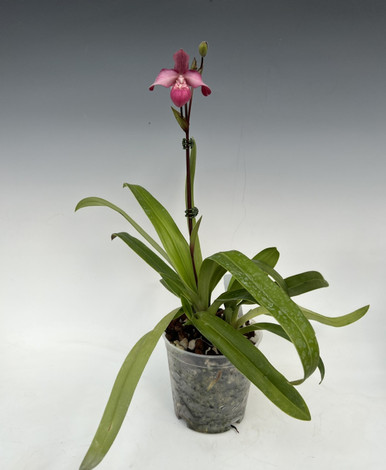 Repot every 1 to 2 years, preferably in the spring or fall when temperatures are mild. Be careful to minimize disturbance to the root system, only removing dead or dying roots from the plant. Be careful to take off the old compost without causing damage to the live roots. Pot with oldest growth closest to the rim of the pot, allowing room for 1 to 2 years growth. We find that plastic pots work best for Phragmipedium. If the mix is old, crumbly and sour, carefully remove the media and rinse the root system. Trim off any dead roots and dead growths. Position the plant with its oldest growths to the edge of the new pot. Then, spreading the plant roots out, fill in the space with the potting medium. Should you wish to divide your plant at this time, each section should have 2 or three growths in addition to any new leads. Old leafless growths should be removed if the procedure will cause no damage to the rest of the plant. To avoid the transfer of orchid diseases, it is standard procedure to sterilize all cutting and potting instruments before using them on a plant. This can be done by flaming pruning shears with a butane torch, or by spraying with rubbing alcohol and wiping with a clean paper towel.