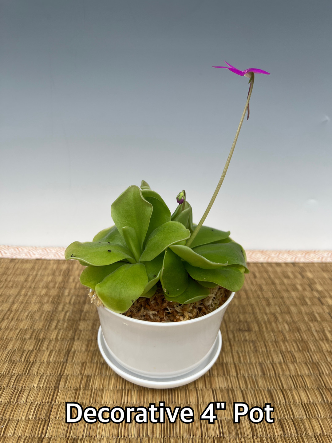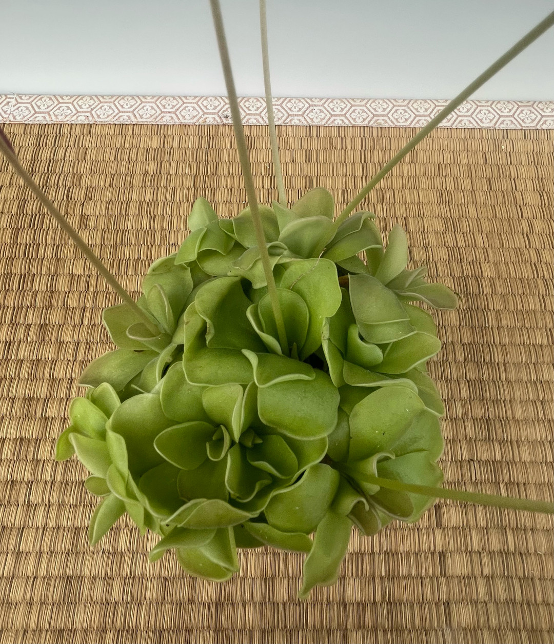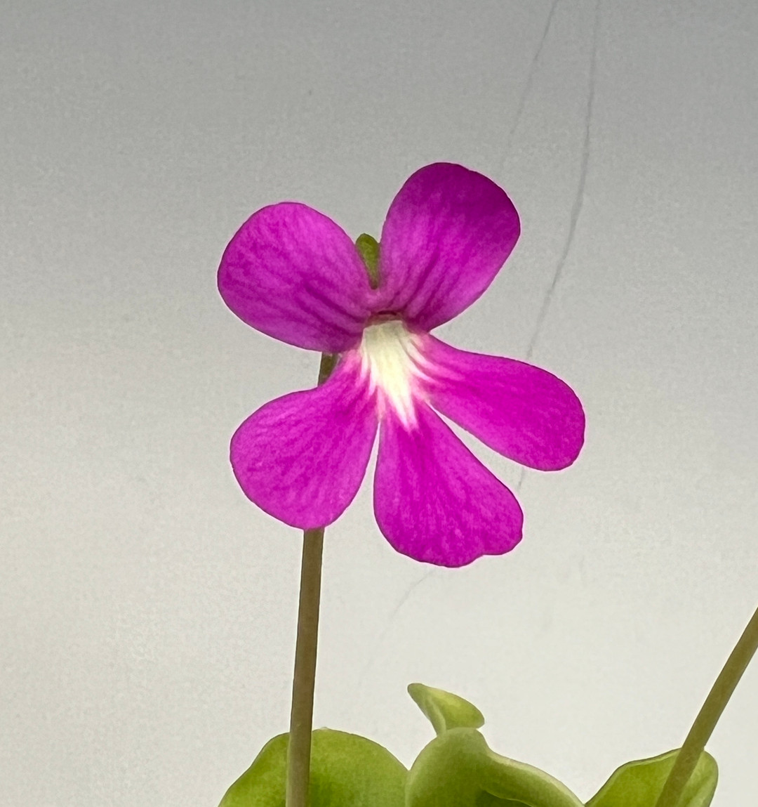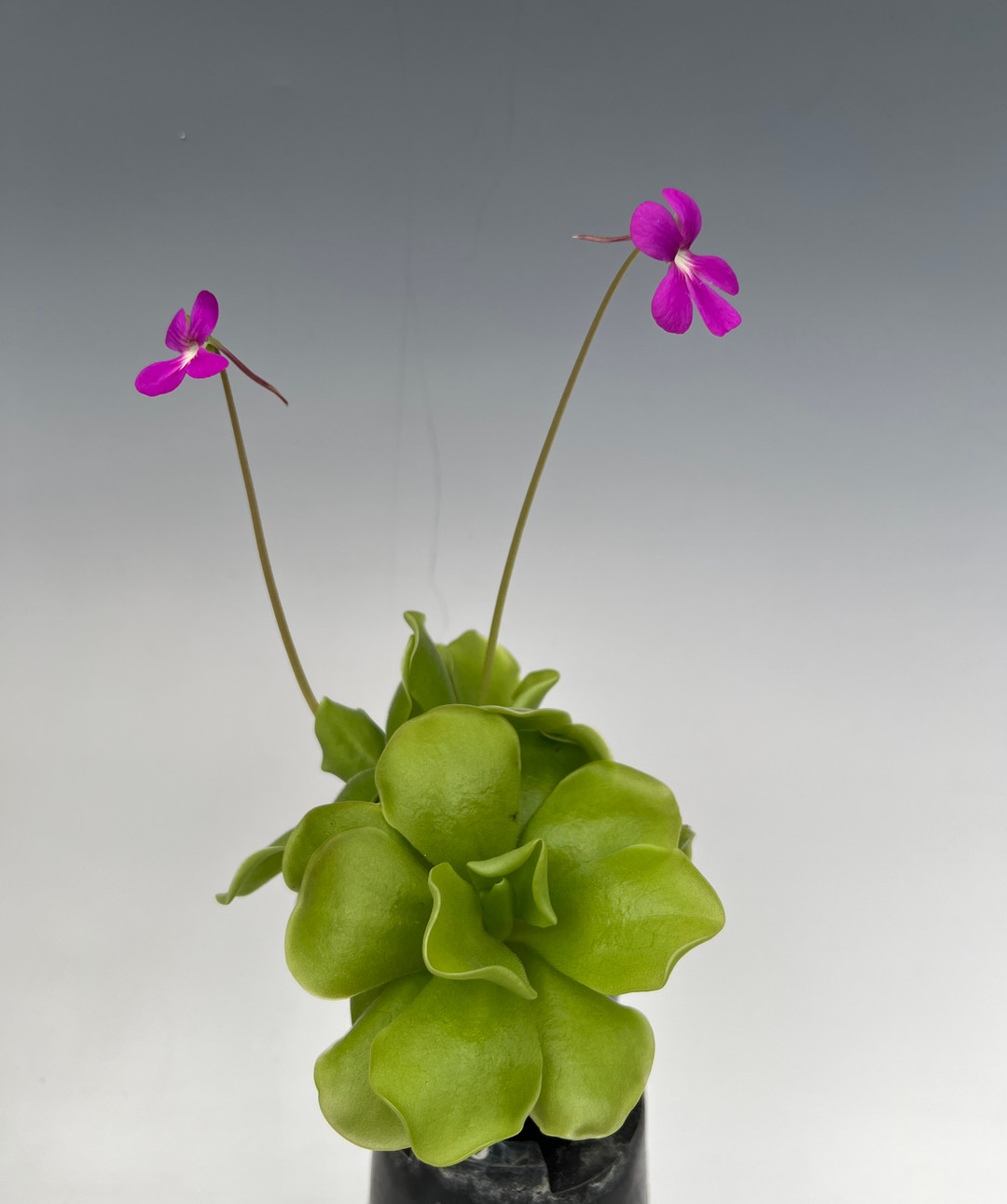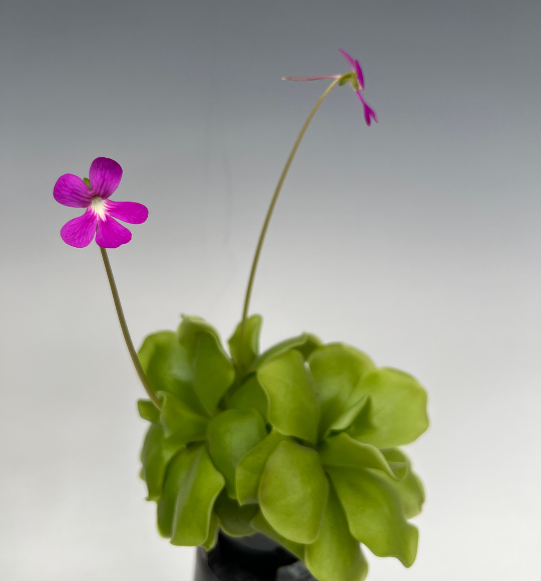 This Pinguicula species is native to El Salvador, Guatemala, Honduras and Mexico. If you want to catch those pesky tiny black fungus gnats that swarm around plants, this is your friend! This is a great mid-sized member of the carnivorous Butterwort group as it is easy to grow, and is free-flowering throughout the year.