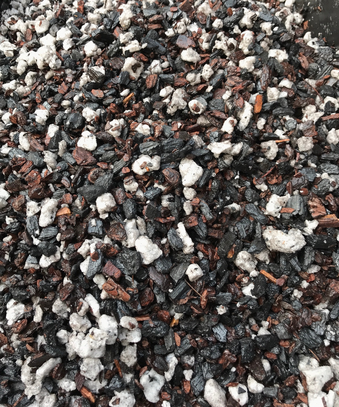This is an alternative mix to using sphagnum moss with Neofinetia. Since the posting of our video, we have found that a combination of medium grade and small grade bark works best for water retention overall, and this mix now consists of a mix of medium and small Orchiata, perlite and charcoal. The ratio is 1/3 of each product, with the bark consisting of a blend of power and classic Orchiata. We previously used growstone instead of perlite, but it is no longer in production so we are using a coarse perlite instead.