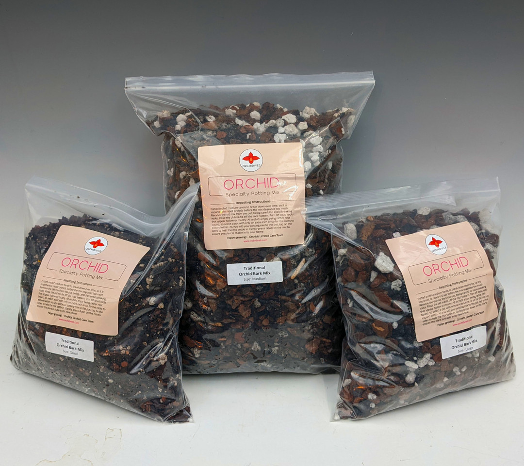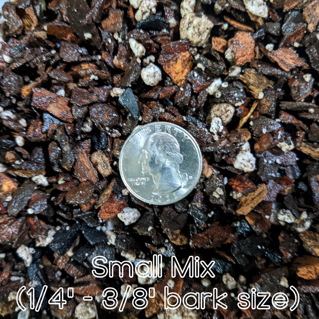 Small Mix This smaller size mix is good for seedlings or water-loving orchids like Phragmipedium. We usually use this mix in pots up to 4" in size for various orchids. The exception being Bulbophyllum, which grow excellently in it even when potted in large bulb pans.