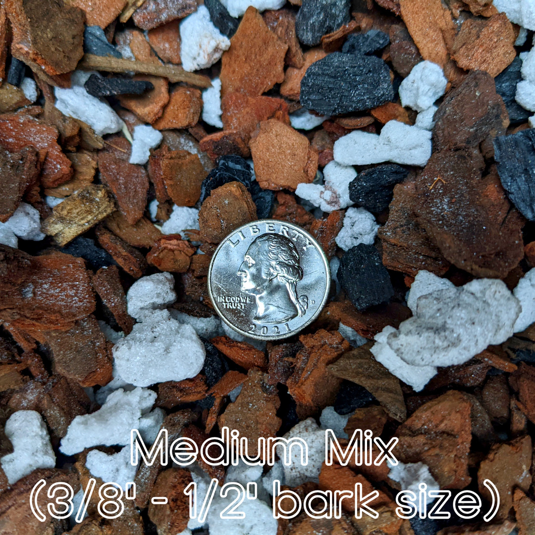 Large Mix Medium-coarse mix recommended for pots 6" or larger, or for plants that like to dry out faster in the smaller containers.